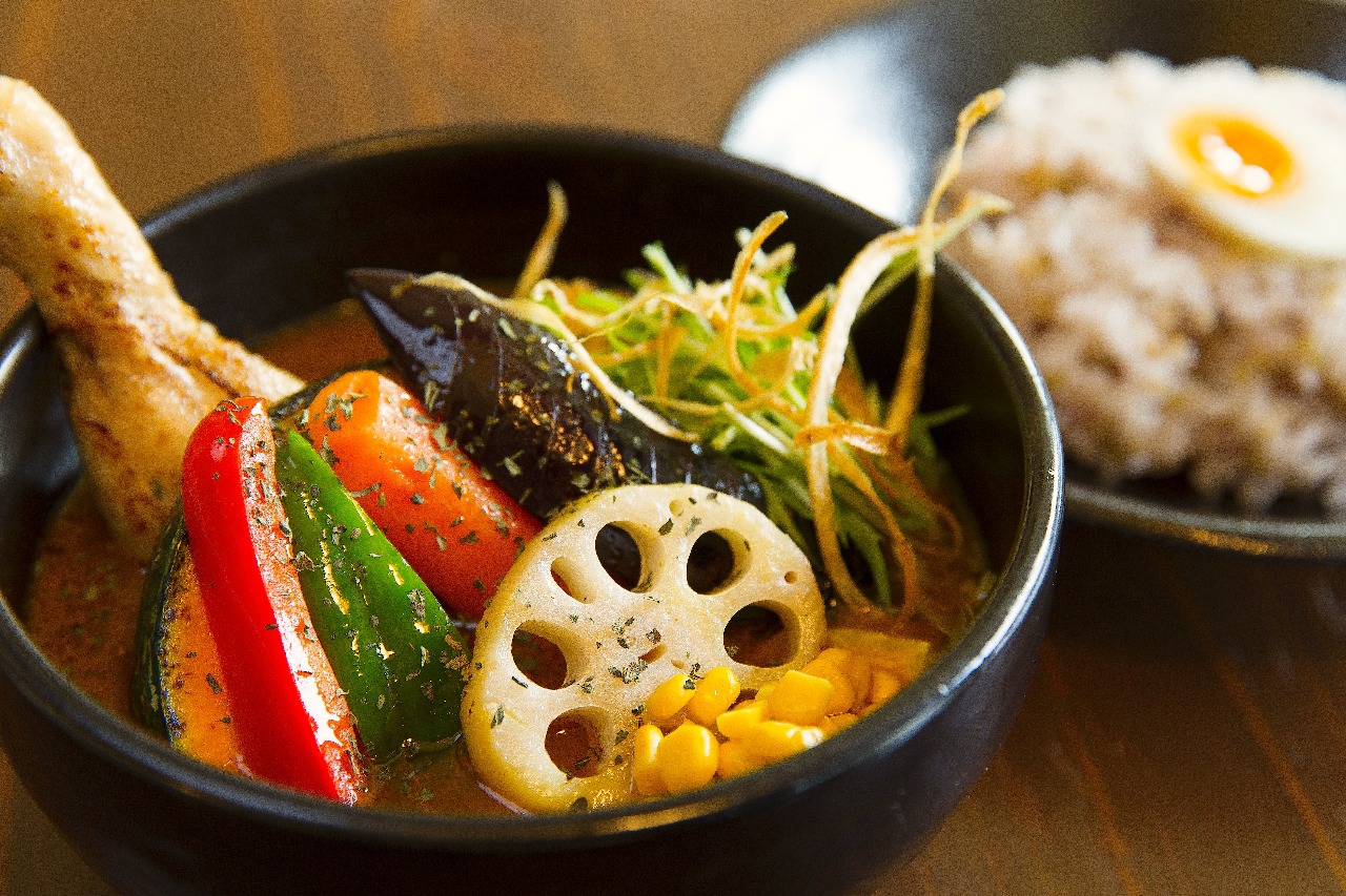 Soup curry is a Japanese style curry dish originating from Sapporo in Hokkaido. It is said that a chef of the cafe called “Ajanta” took the idea of Chinese and Korean herb soup and South Indian curry and created “Yakuzen Curry” in 1971. In 1993, the restaurant “Magic Spice” had the idea of adding an Indonesian dish called “soto ayam” to curry and created the first “soup curry”. It instantly became popular in Sapporo and many restaurants in the area started to provide their own styles of soup curry. In 2002, there were over 200 soup curry restaurants and it came to be recognized as the most famous of Hokkaido’s B-kyuu gourmet foods.